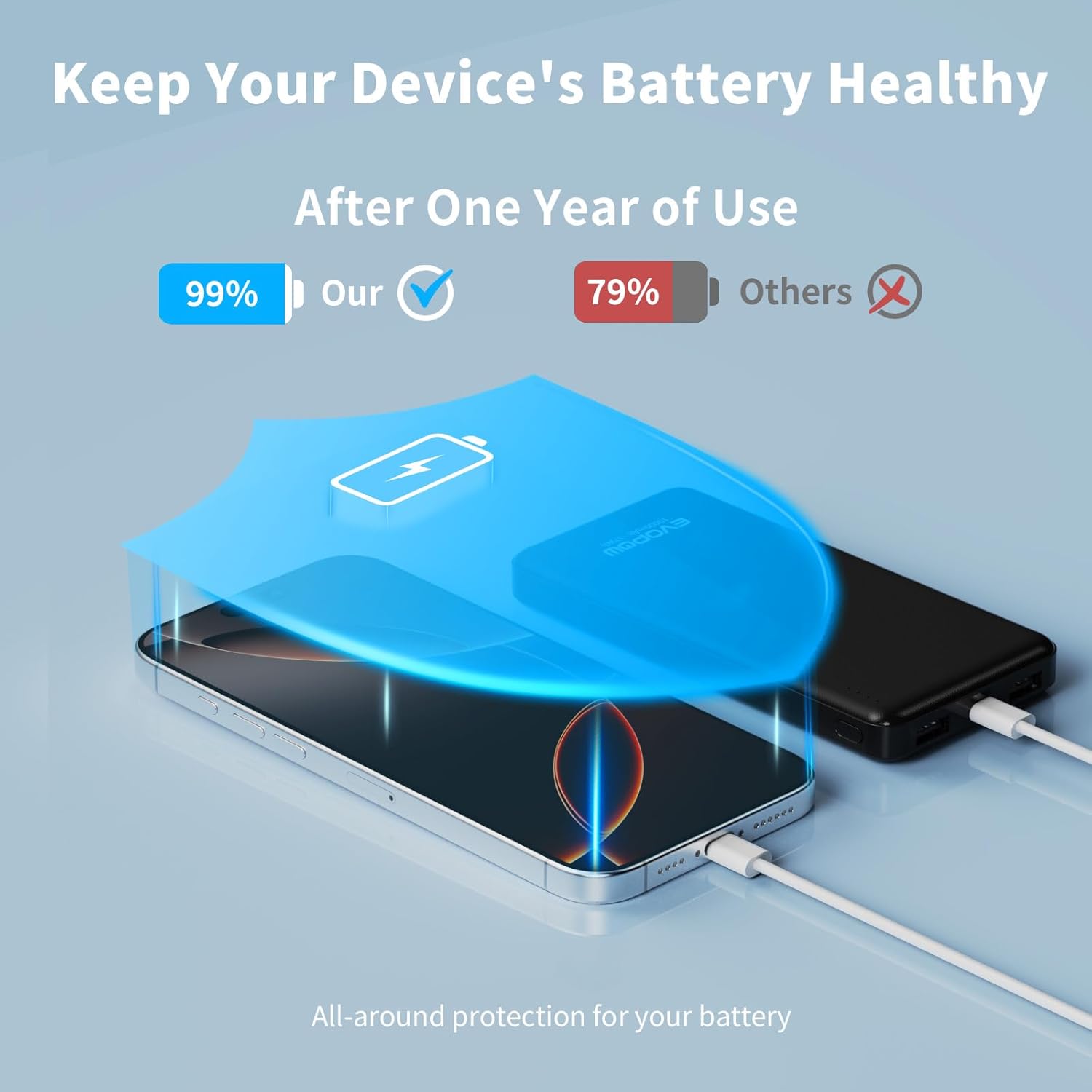 - High-Speed Charging Fast charging fuels iPhone up to 79% in just one hour. Evopow power bank for iphone identifies and meets your device's ideal speed, charges twice as fast as a 2.1A charger.